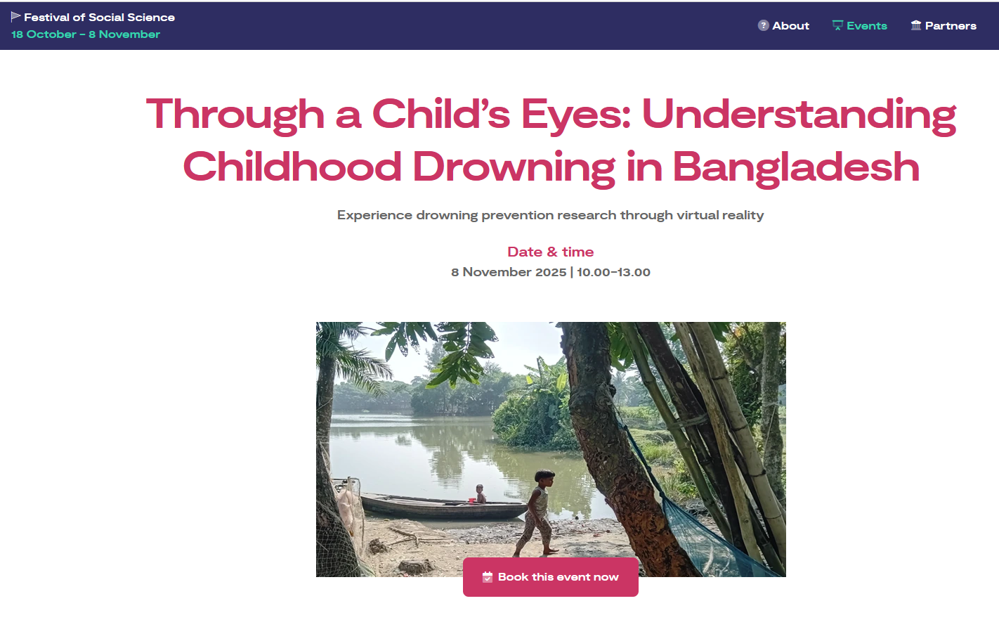 Bournemouth University is participating in the 2025 ESRC Festival of Social Science (FoSS), with a workshop about the Sonamoni project. Sonamoni is being coordinated by Bournemouth University (BU) and it is a collaboration with the Centre for Injury Prevention and Research (CIPRB) in Bangladesh as well as the University of the West of England (UWRE), Bristol, the University of Southampton, Design Without Borders (DWB) in Uganda, and the Royal National Lifeboat Institution (RNLI). Our FoSS event on drowning prevention research will be at the RNLI in Poole on the morning of Saturday 8th November. Tickets for this free event are available, to book yours, click here!