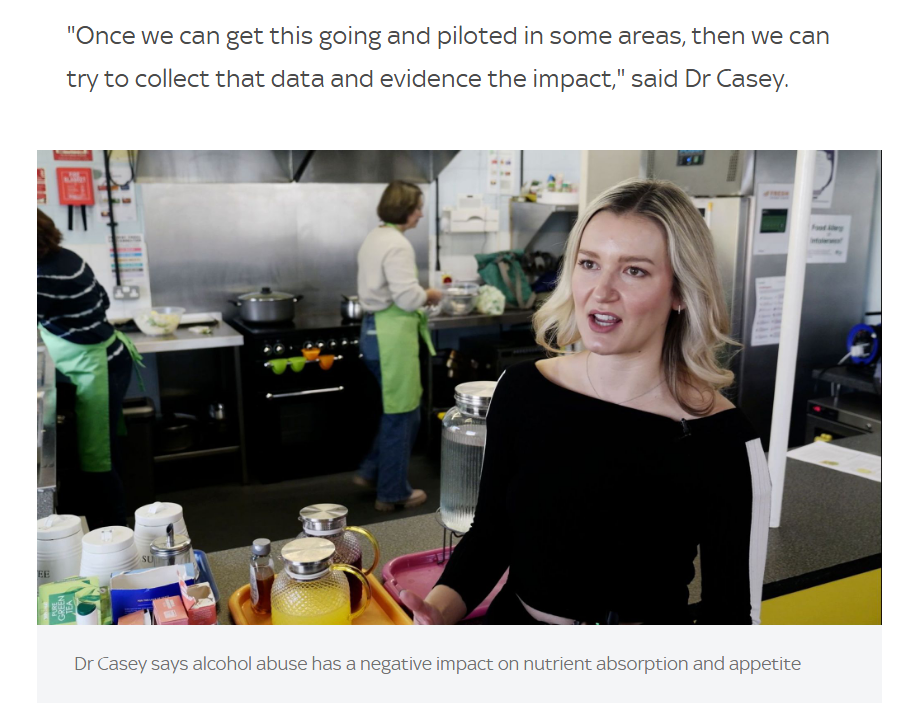 On the last day of 2025 Dr. Chloe Casey appeared on Sky News in a piece with the heading ‘Nutrition key in new alcohol abuse rehabilitation scheme to fight addiction‘. The media coverage was for the project Nourish the New You which looks at the science behind how better nutrition can prevent relapses during withdrawal. Dr. Chloe Casey from Bournemouth University is working with the drug and alcohol charity We Are With You and the Friendly Food Club to deliver cooking courses. Chloe is Lecturer in Nutrition and Behaviour and she conducts her research in the Centre for Midwifery & Women’s Health (CMWH) in the Faculty of Health, Environment & Medical Sciences.