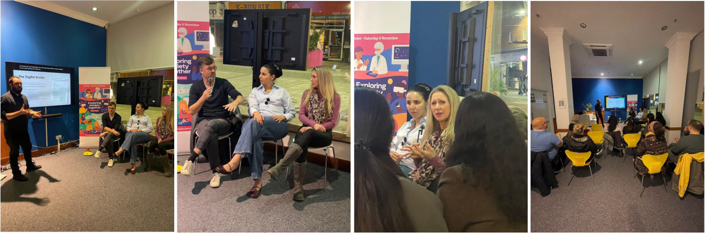 The series continued with Digital Futures for All, led by Dr Philip Wilkinson. The session opened with a reflective talk marking three years of the Digital Skills Hub, sharing lessons from working at the front lines of digital inclusion, followed by a 45-minute panel discussion and Q&A. The panel brought together academic experts and practitioners, including Dr Phil Wilkinson (Digital Skills Hub), Dr Nick Gray (Bournemouth University), Kaoutar Addi (Digital Skills Hub), Rachel Doe (Bournemouth, Christchurch and Poole Council), and Andy Merchant (Bournemouth Churches Housing Association), who shared research insights alongside real-world experience of engaging the public in digital skills programmes.