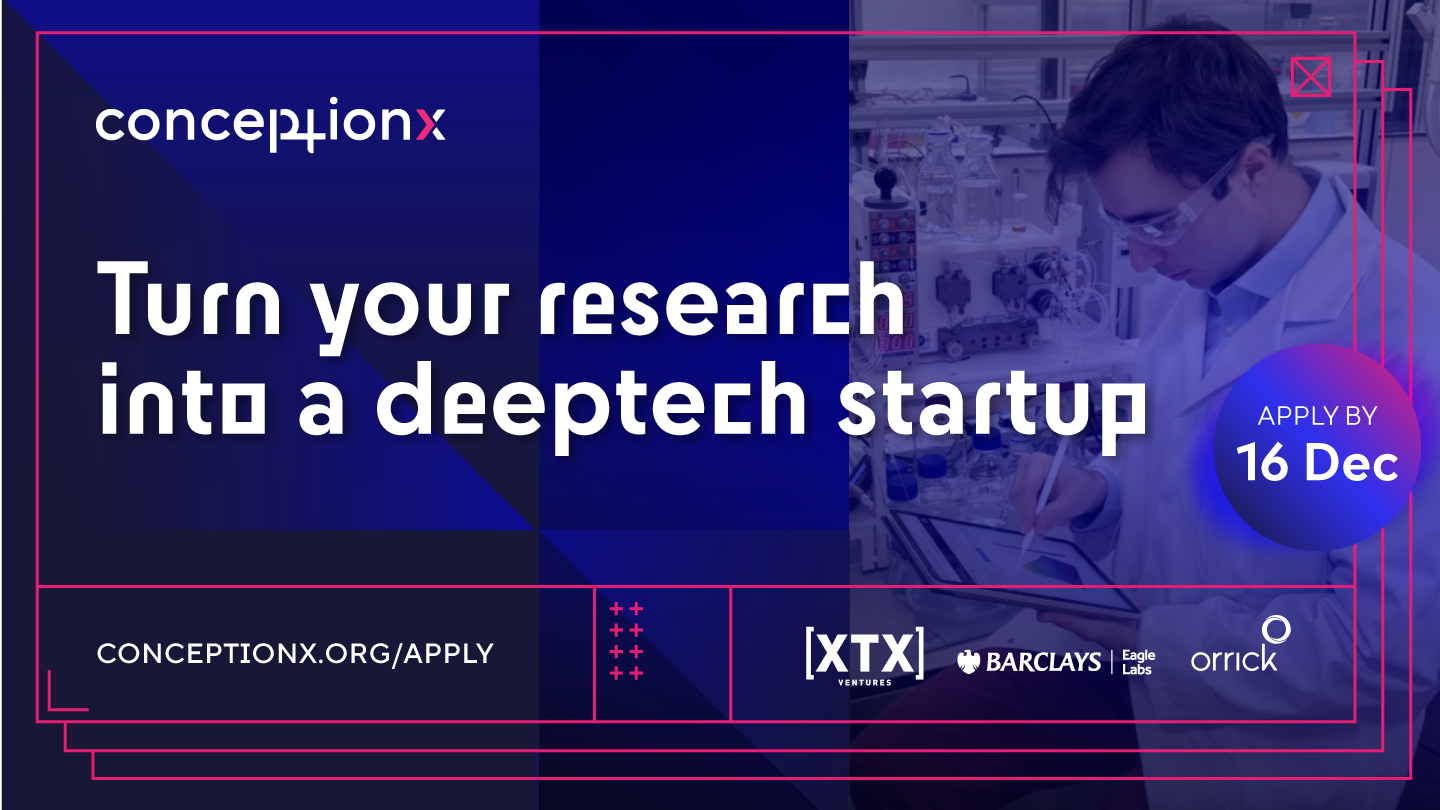 Conception X is a UK-based not-for-profit that runs the largest cross-university deeptech venture programme for researchers across Europe. Its core mission is to turn more scientists and engineers into founders, accelerating breakthroughs and building new career pathways for researchers.